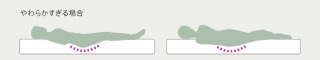 体圧が大きい腰からお尻まわりが沈み込みすぎると背骨の弯曲が大きくなり負担が逆に大きくなってしまいます。